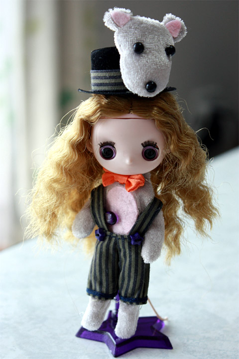 せっかくなので、ドルチェナさんにヤマネの衣装を着せてみました。