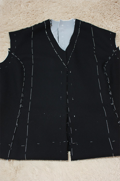 今、布を裁断して、仮縫いしてるとこです。